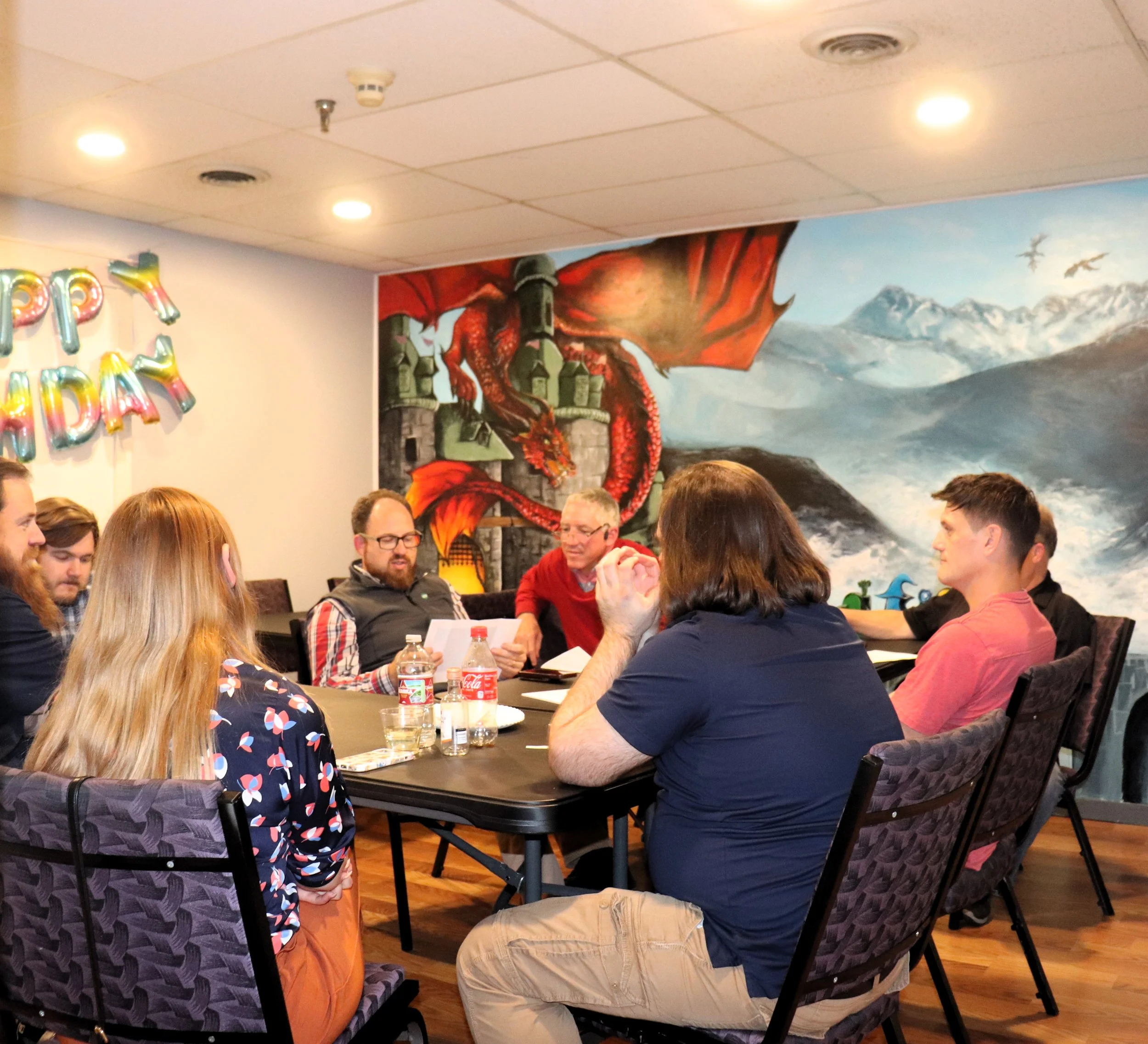Our final Cybersecurity Community series event with Pondurance was definitely our most fun. We met up at Village Meeple Board Game Cafe, shared some MsSalty's Pizza and beverages, and walked through a gamified cybersecurity incident. Each of our four groups were give a different industry, but were given the same starting points: a vague description of their business and a real-life ransom note. They were then left to start formulating their response but were not left alone! Every ten minutes, they were given more information. During the third round, they rolled dice to determine the type of endpoint solution they were using and the status of their backups.